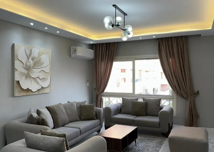 Situated within 4 km of the Gravity Code, the spacious 108 m² New Cairo Rehab Haven Apartment also boasts easy access to El Giza train station which is 80 minutes away by car. The 2-bedroom apartment offers a view of the garden, and there is a terrace.